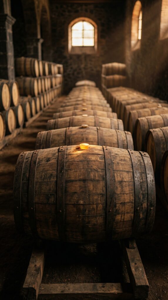 Patiently aged in oak barrels ranging from one to five years developing complexity, smoothness, and a rich, lasting finish